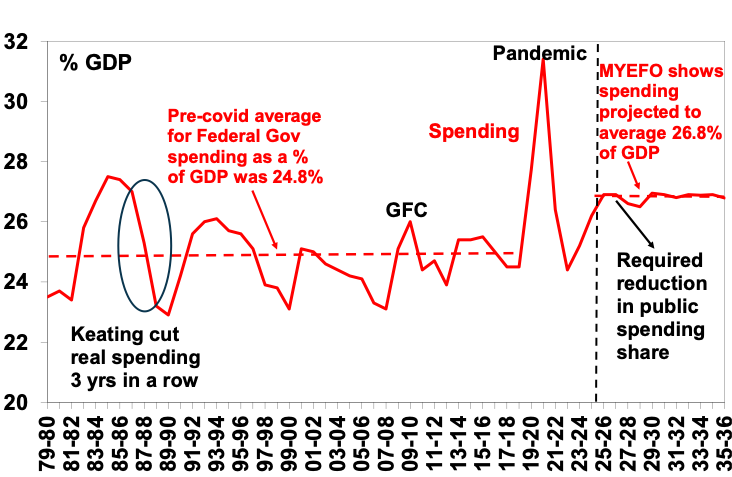 So, the key for the Budget is to cut spending over the next few years as a share of GDP to free up capacity in the economy and hence help ease inflation. Our assessment is that it needs to be brought back to around 25% of GDP which is in line with the longer-term norm. If this were to occur over the four years to 2029-30 it would entail cutting roughly $102bn out of Federal spending over four years and constraining spending growth to 3%pa. This would require cuts to the NDIS (with the Government looking like it might move in this direction), more aggressive cuts to the public service and more means testing of welfare.