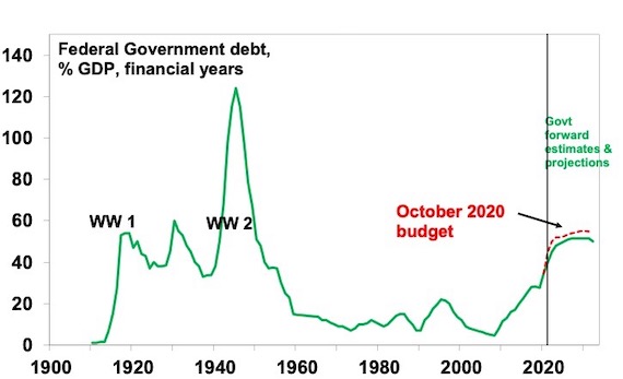 • The Government now expects the Federal budget deficit to peak at $161bn this financial year (down from $214bn in October’s Budget) and fall to $107bn in 2021-22.